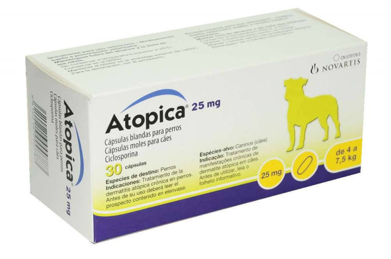 Atopica are soft capsules prescribed to dogs who suffer from allergic dermatitis—a skin reaction caused by contact with an allergen.